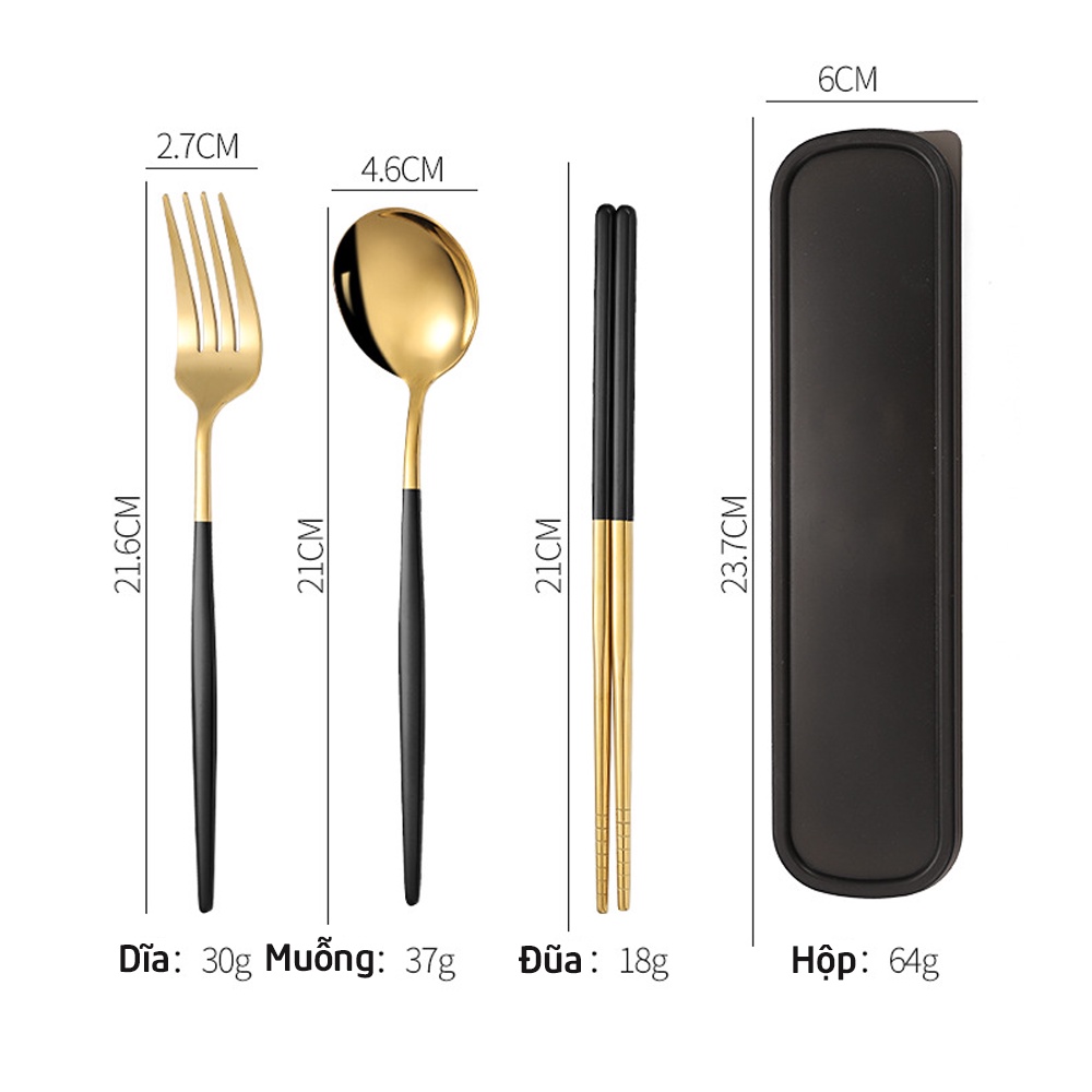 Bộ đũa thìa DT-003 chất liệu Inox304 mạ vàng cao cấp có hộp đựng an toàn cho sức khỏe