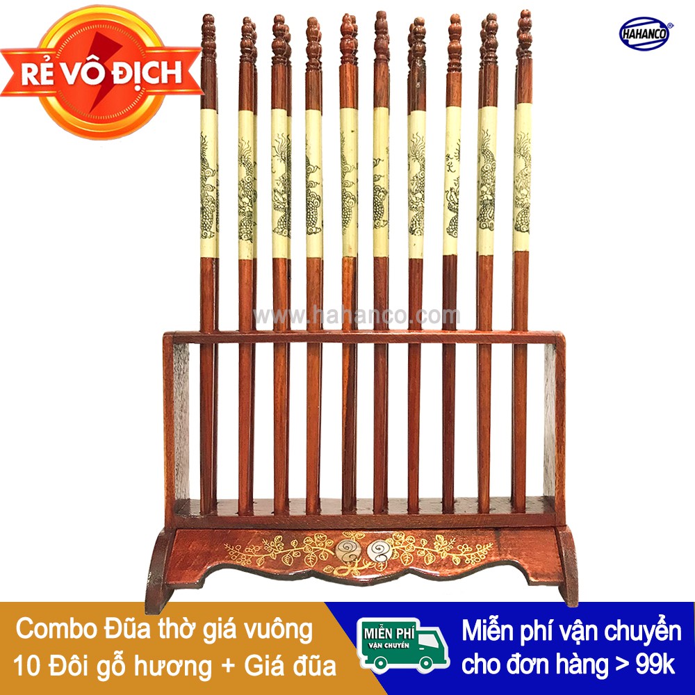 Bộ đũa thờ 10 đôi + Giá đũa Vuông (Gỗ hương) - Tâm linh - Truyền Thống - Văn hóa người Việt (CTH791) HAHANCO