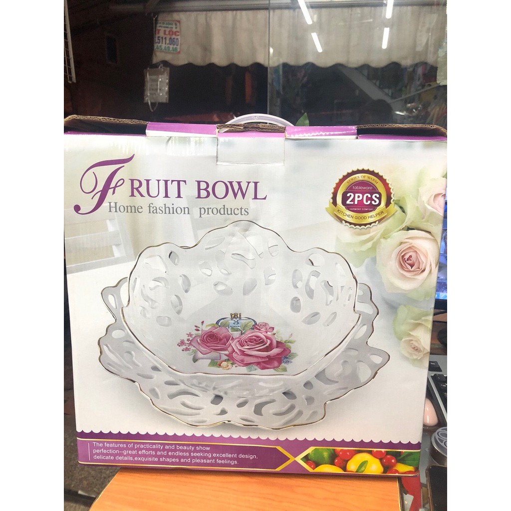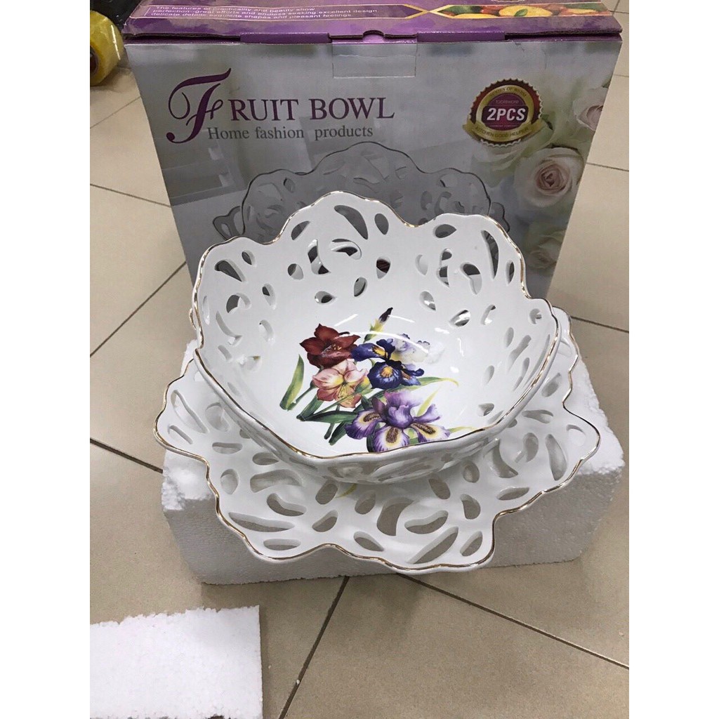 Bộ đĩa tô sứ đựng hoa quảĐường kính bát 25cm, cao 11cm