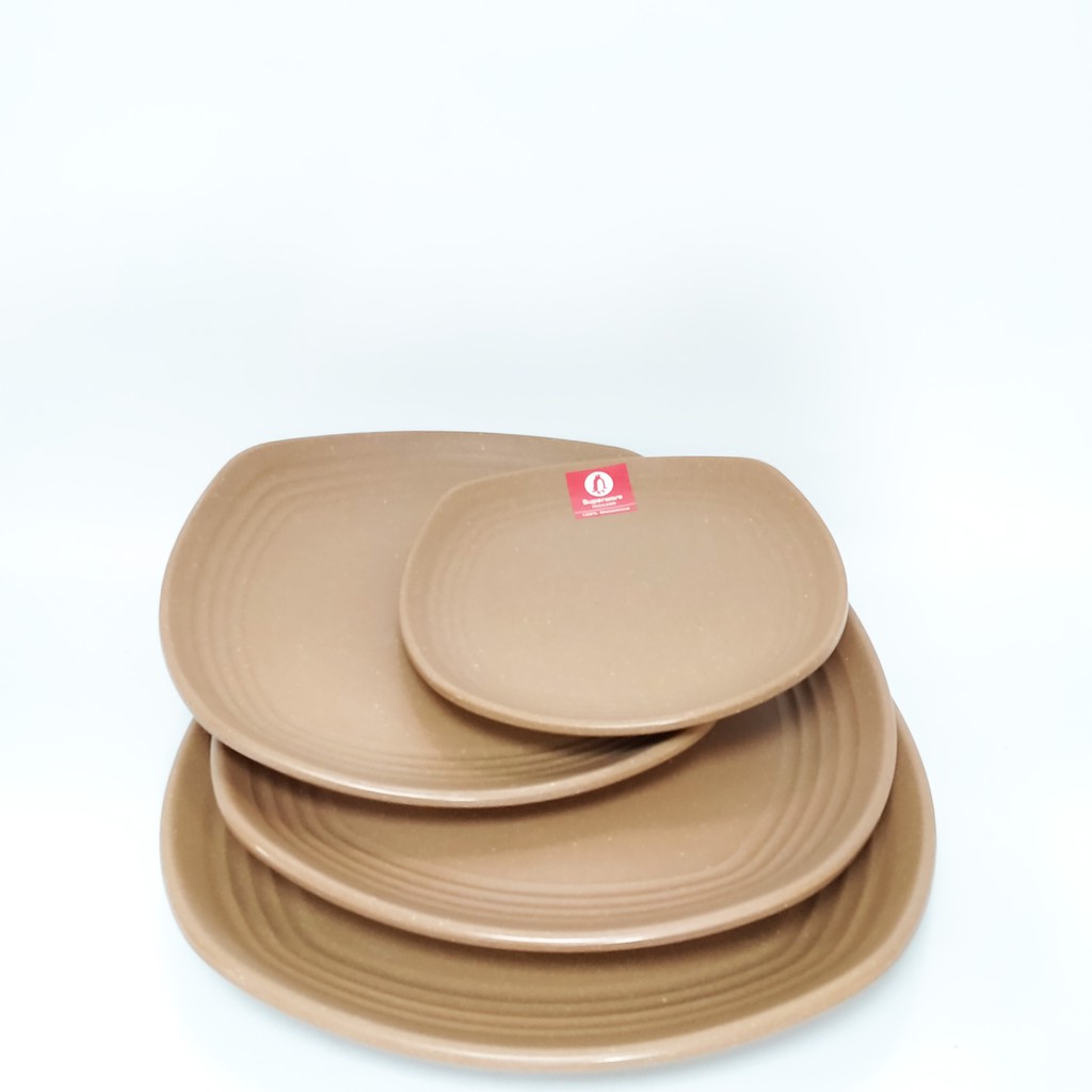 *** Bộ Đĩa Tròn, Đĩa Vuông, Đĩa Tam Giác SUPERWARE Nhựa Phíp 100% Melamine - Dark Brown- Bề mặt nhám dày dặn khi sờ cảm giác rất giống chất liệu gốm sứ