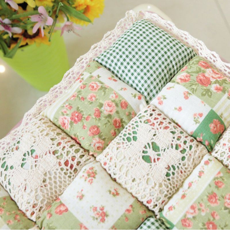 Giới thiệu A02/Đệm MỎNG lót ghế hoa nhí retro phối vải ren phòng cách Nhật Decor trang trí nhà bàn học bếp sàn gỗ cotton chần bông