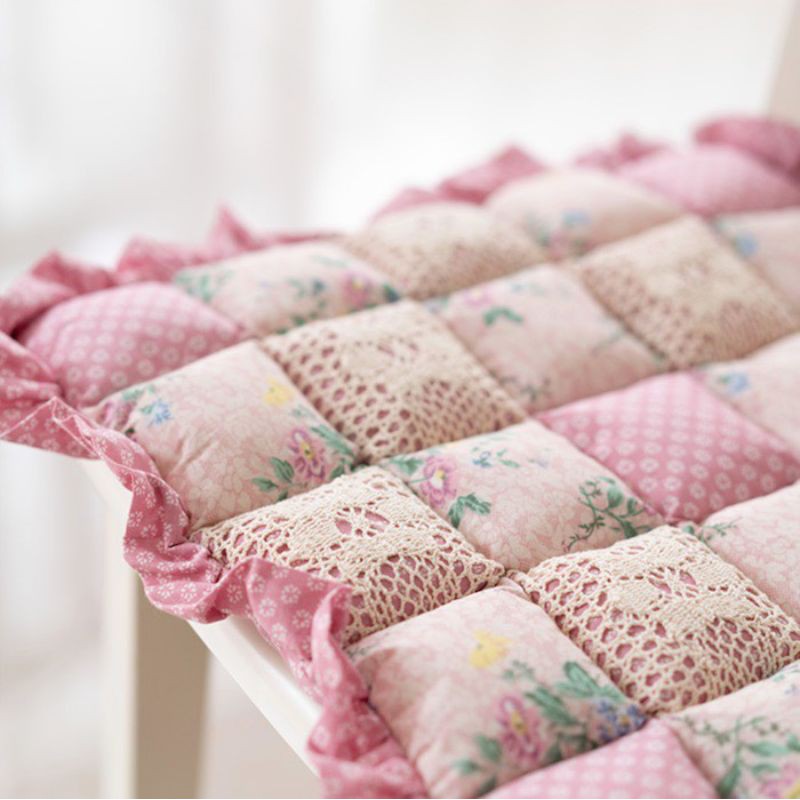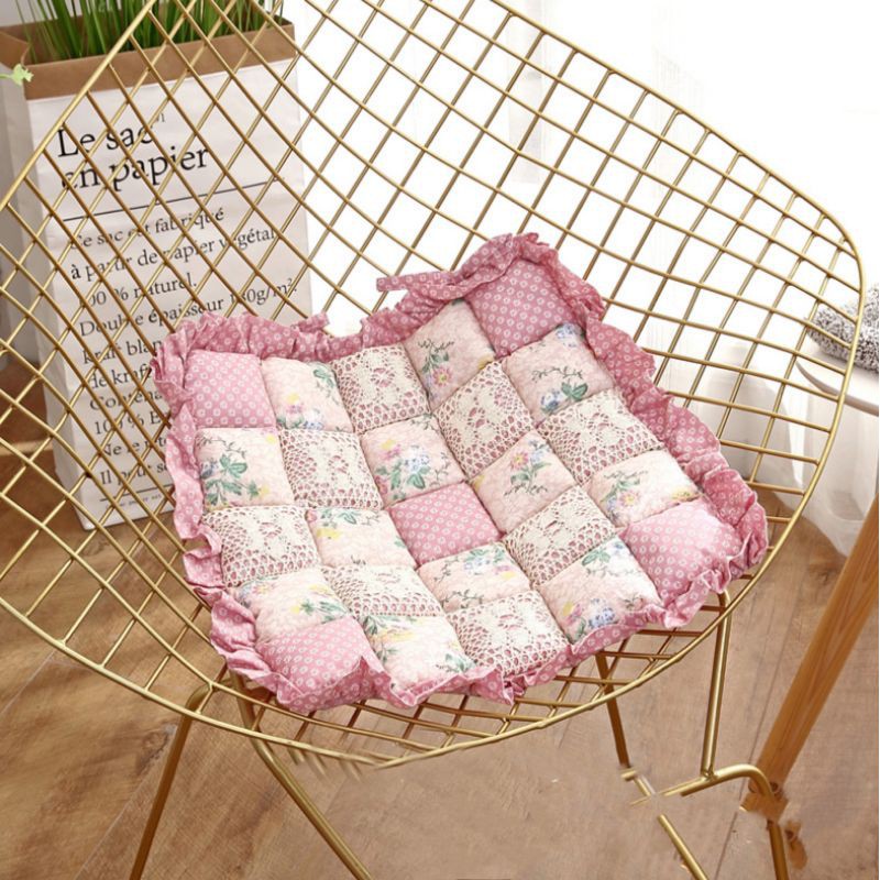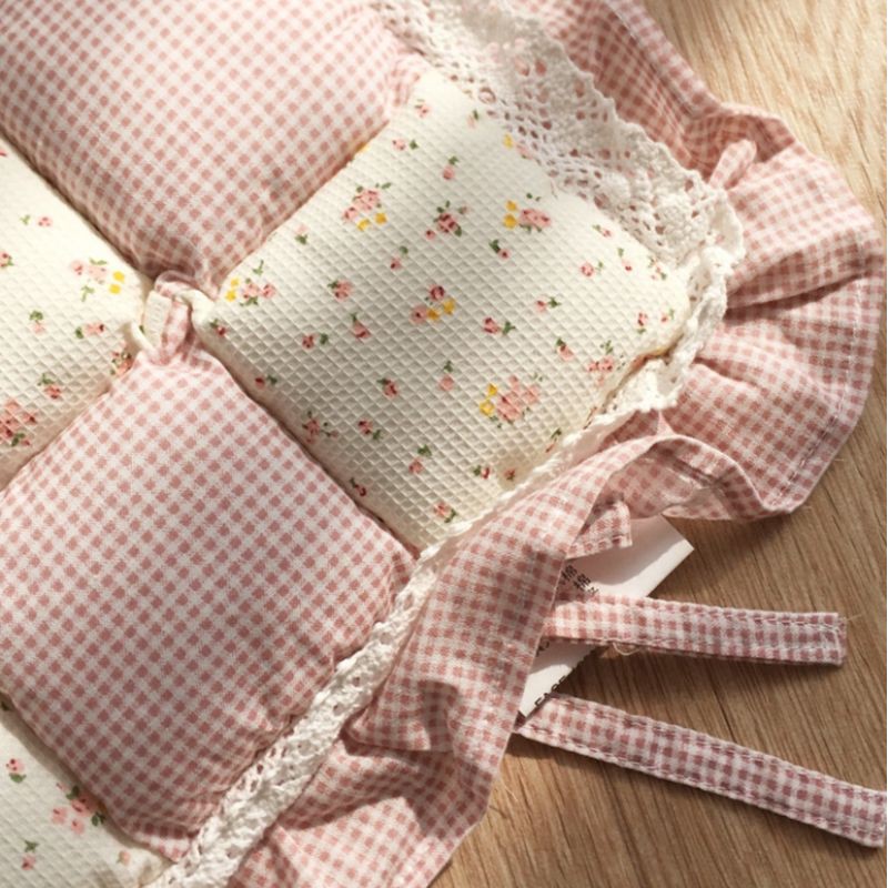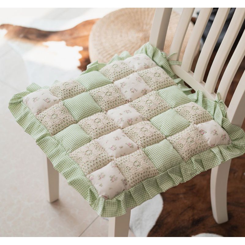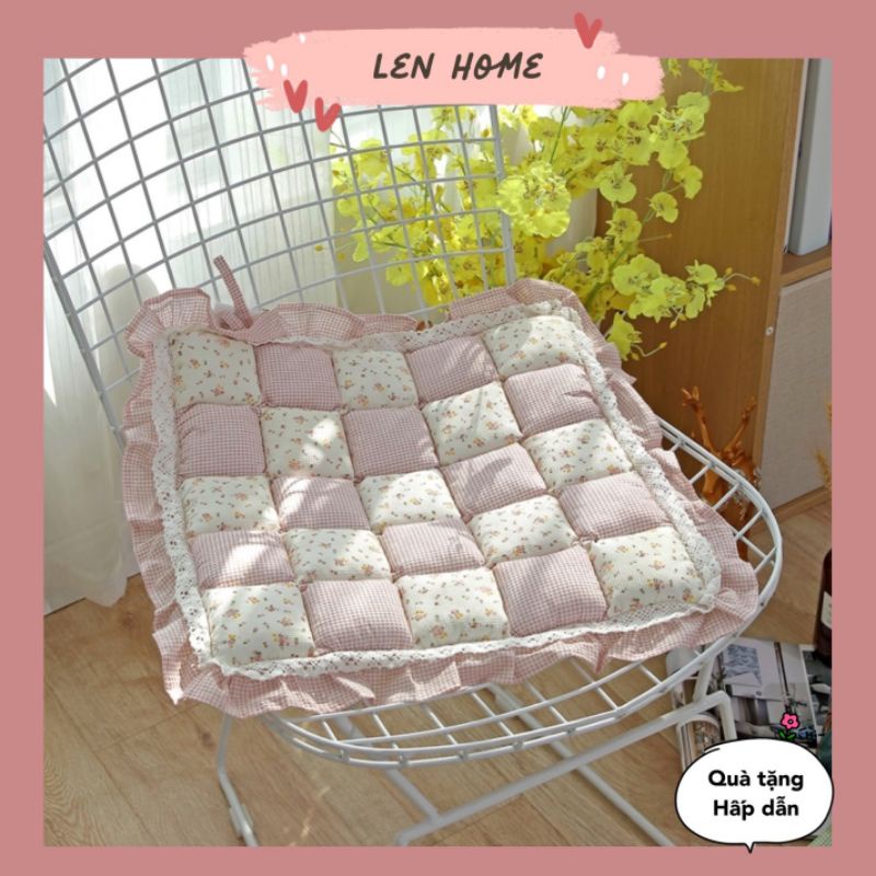 A05/Đệm MỎNG lót ghế vuông diềm rèn hoạ tiết hoa nhí vintage phong cách Nhật Decor trang trí nhà xinh sàn gỗ Lenhome