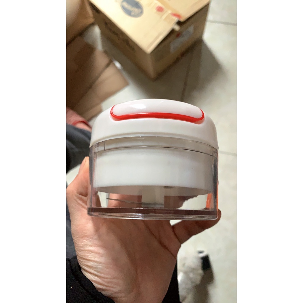 - sau khi được chia làm đôi, bạn nên kéo thả đều tay nhanh mạnh hơn 1 chút thì hành tỏi sẽ được xay nhỏ.