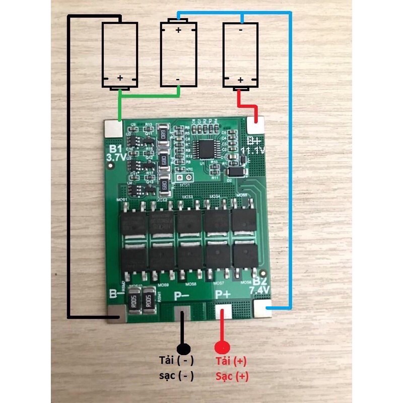 - Hàn theo thứ tự từ B- (0V), B1 ( 3.7V/4.2V), B2 (7.4V/8.4V) và B+ (11.1V/12.6V).