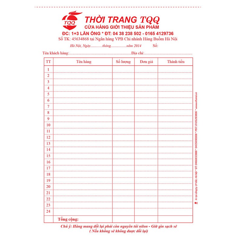 >>>NHẬN IN THƯƠNG HIỆU RIÊNG TRÊN HÓA ĐƠN