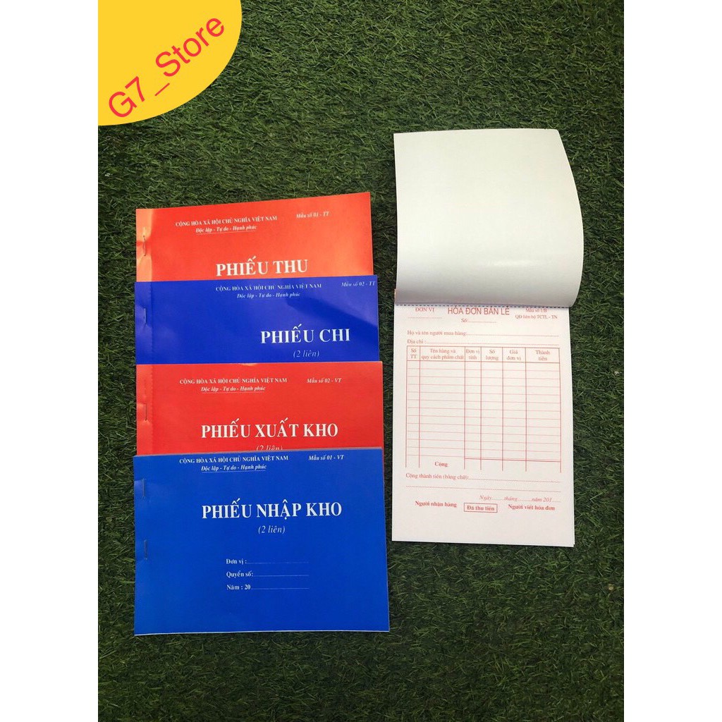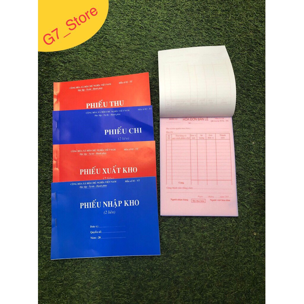 (A5 dày 60 tờ) Quyển phiếu thu,phiếu chi,phiếu xuất kho,phiếu nhập kho 1lien/2lien/3lien Có Rãnh Xé