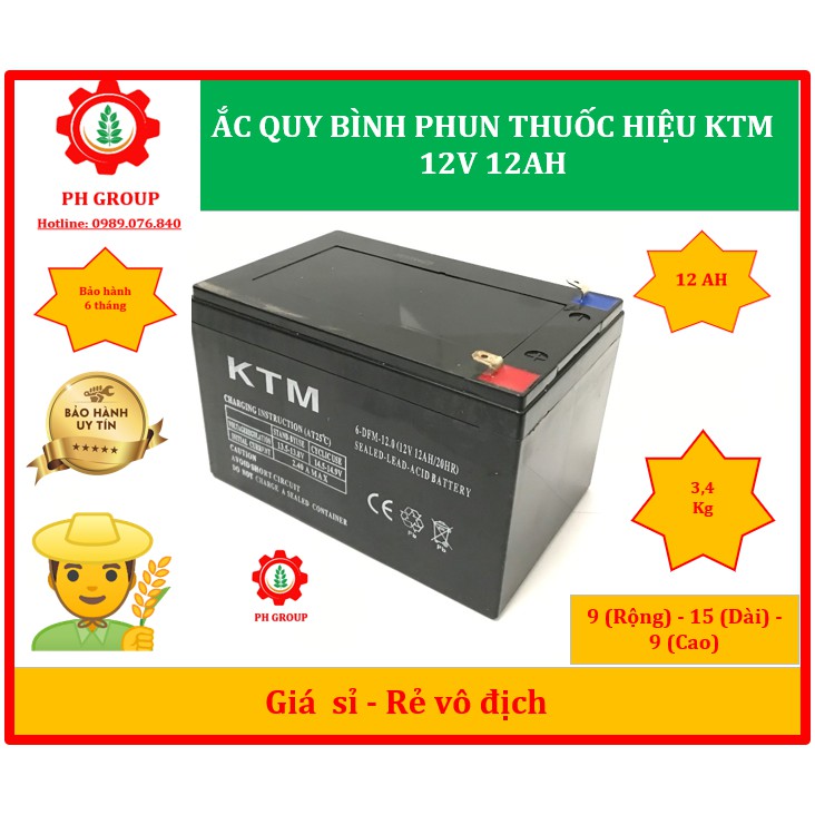 Ắc Quy 12V 12AH chuyên dùng cho bình phun thuốc trừ sâu, loa kẹo kéo | Hiệu KTM | Bảo hành 6 tháng | Bình xịt điện
