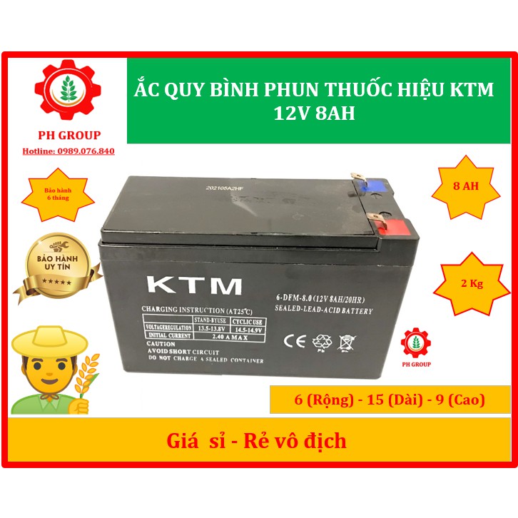 Ắc Quy 12V 8AH chuyên dùng cho bình phun thuốc, loa kẹo kéo, đồ chơi điện | Hiệu KTM |Bảo hành 6 tháng | Bình xịt điện