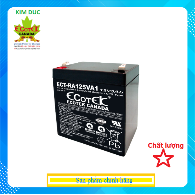 Ắc quy ECOTEK, ECT-RA125VA1, 12V5AH - Dùng cho Bộ Lưu Điện - Hàng chính hãng