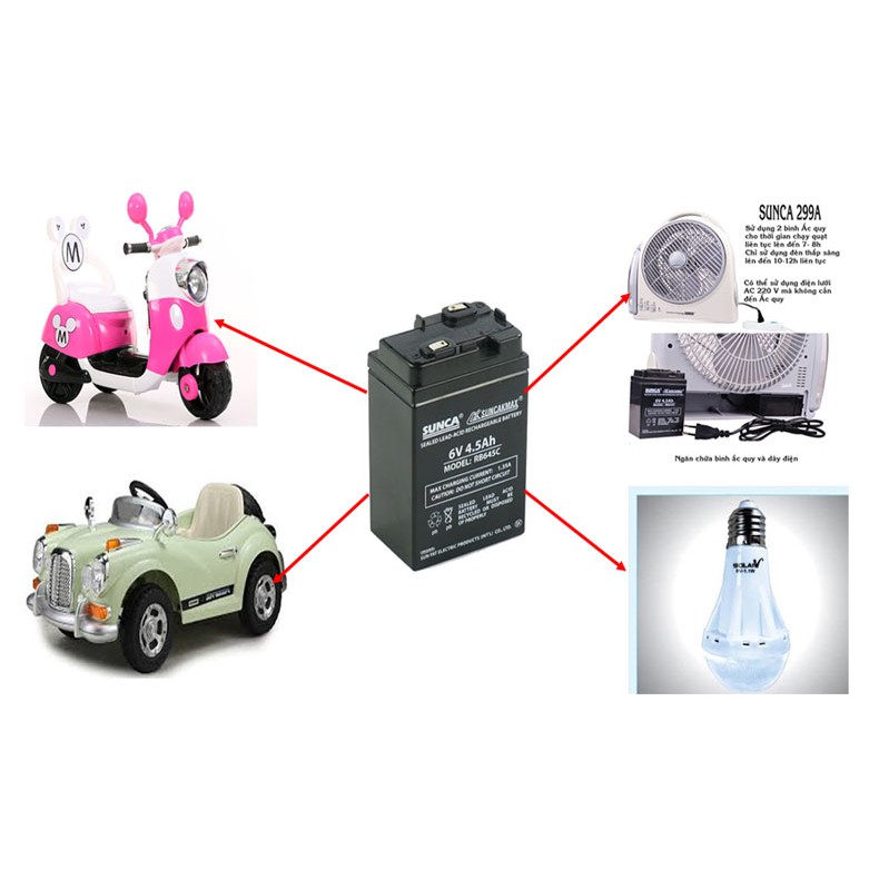 Giới thiệu Ắc quy khô Sunca 6V4,5Ah cho quạt tích điện,đèn lưu điện,đồ chơi trẻ em...