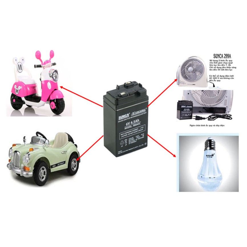 - Bình ắc quy khô 6V 4.5Ah Sunca Đây là một thiết bị rất cần có dành cho những nơi thường xuyên mất điện hoặc không có điện.