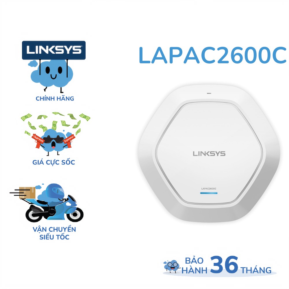 Giới thiệu [Mã BMBAU300 giảm 10% đơn 499K] Access Point Linksys LAPAC2600C chuẩn AC tốc độ 2600mbps Dual-band Cloud wireless