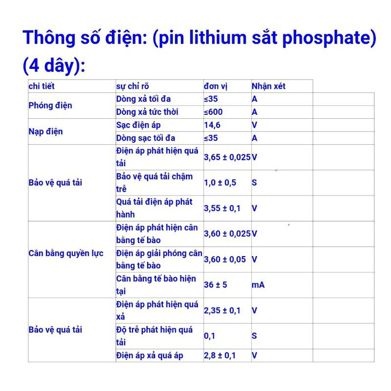 Điện áp phục hồi quá tải: 3.65v ± 0.1v