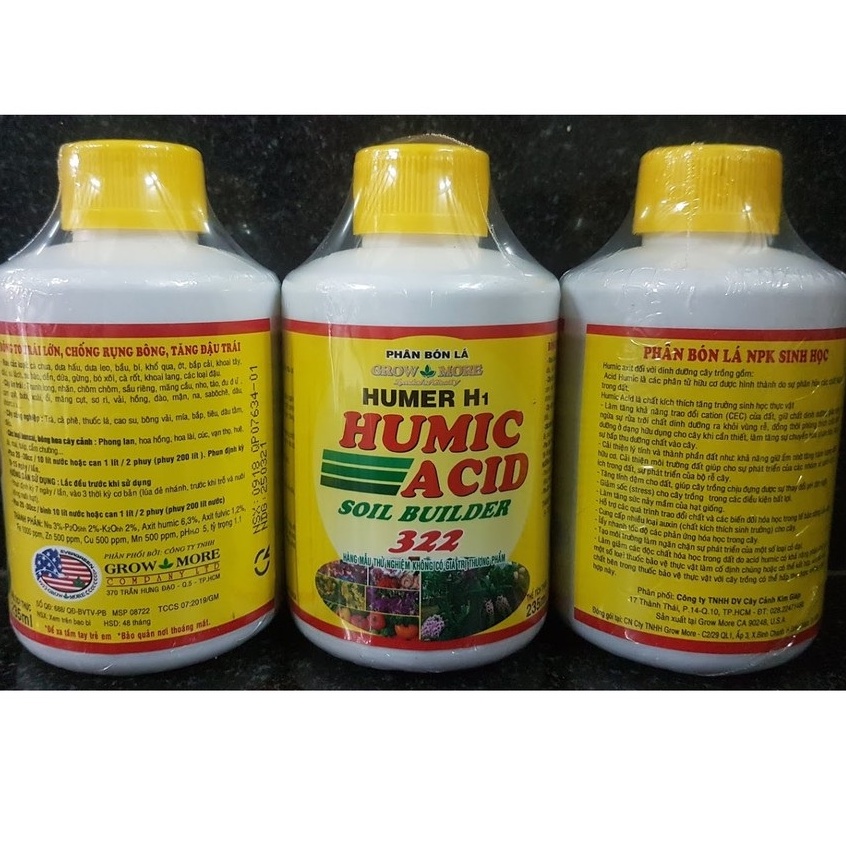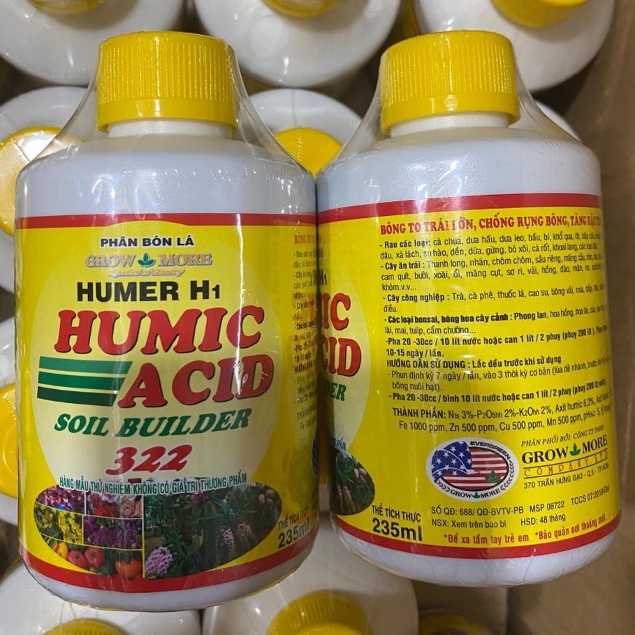Humic Acid 322 235ml, Phân bón super humic, ra rễ mạnh - phát triển nhanhtăng ra hoa đậu trái