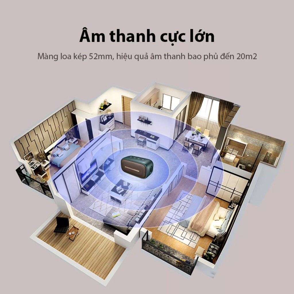 ✔Âm thanh cực lớn, màng loa kép 52 mm, hiệu quả âm thanh bao phủ đến 20m2