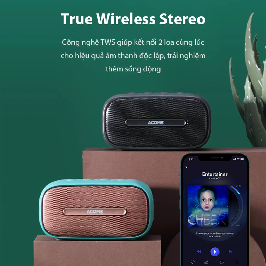 Loa Bluetooth Mini Công Suất 5W Nhỏ Gọn Tiện Lợi Chống Nước IPX7 Hàng Chính HãngThương hiệu: Acome