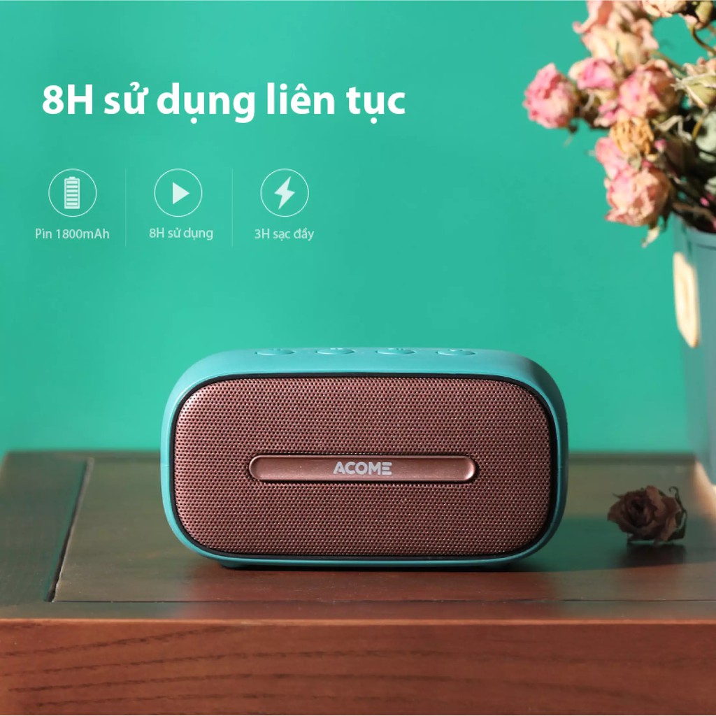 Acome A8 Loa Bluetooth Công Suất 5W Nhỏ Gọn Tiện Lợi Âm Thanh Cực Lớn Bluetooth 5.0 Chống Nước IPX7 Hàng Chính Hãng