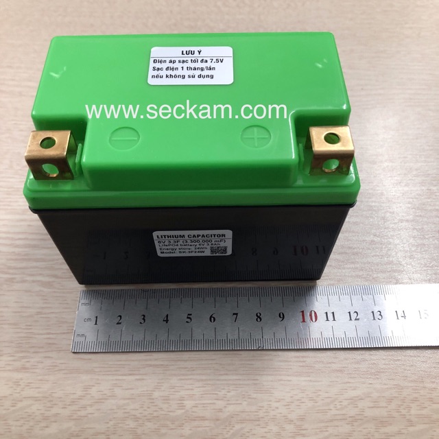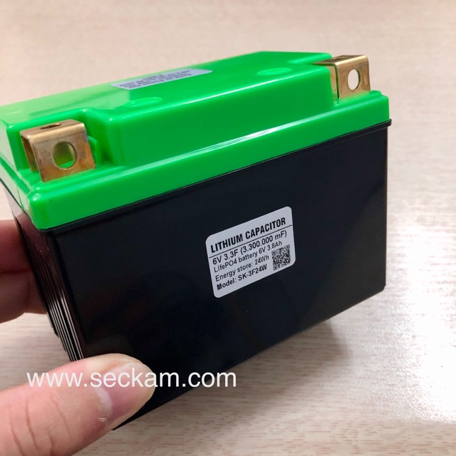- Sử dụng Siêu tụ điện 8V 3.3F (3.300.000 Micro Farads) giúp acquy siêu tụ có dòng xả tức thời lớn, khởi động xe mượt mà, đồng thời siêu tụ điện có chức năng lọc sạch nguồn điện từ máy phát, bảo vệ thiết bị điện trên xe.