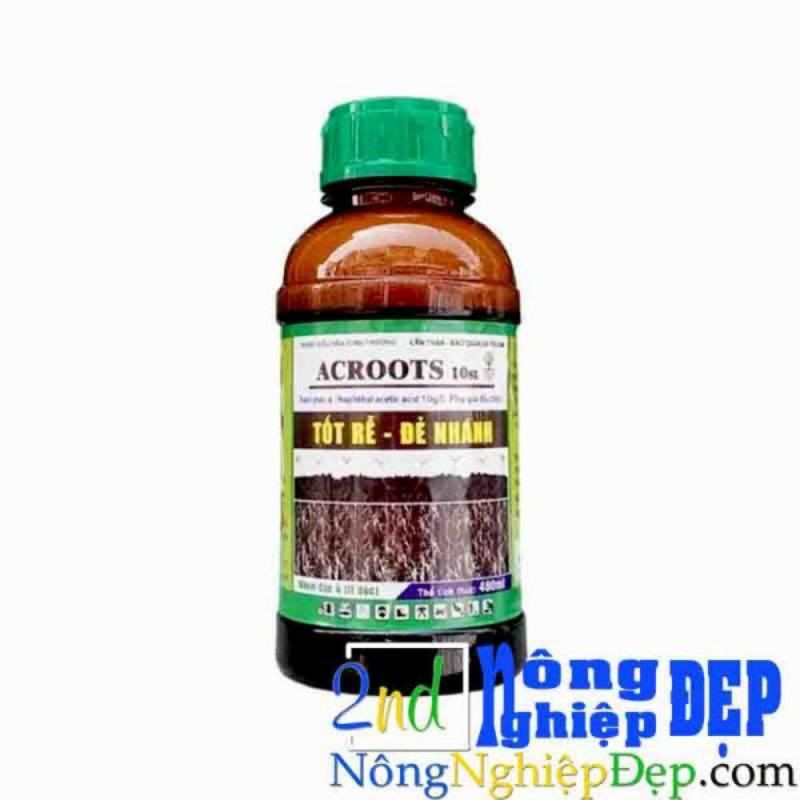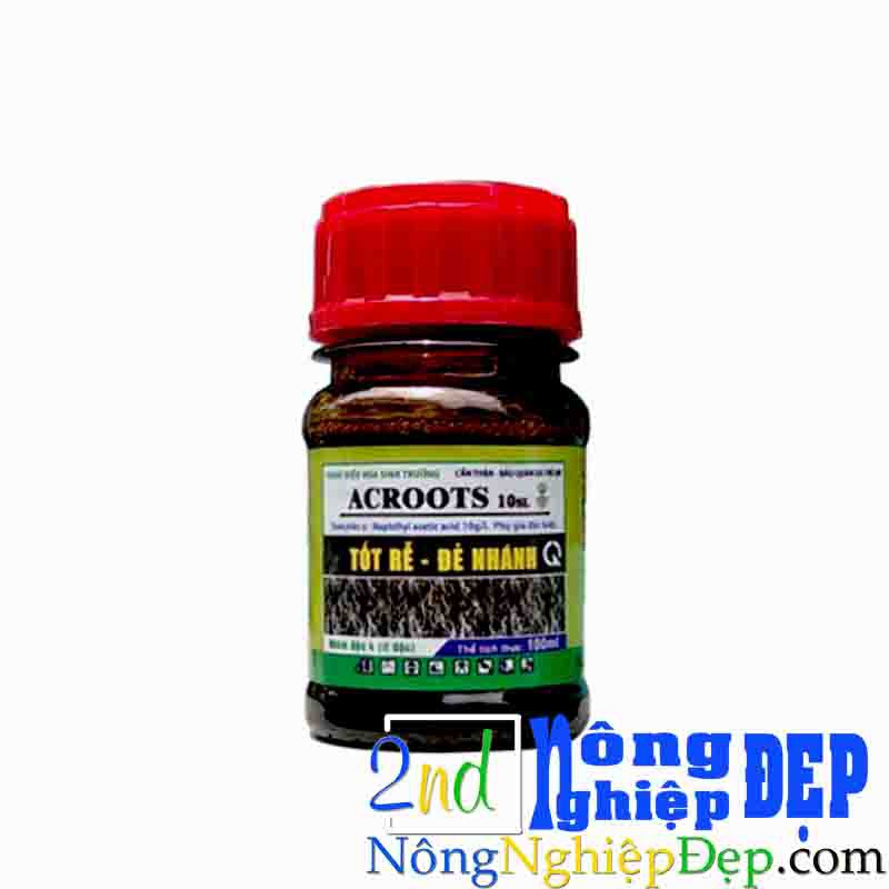 Chất điều hòa sinh trưởng ACROOTS - Giúp tốt rễ, đẻ nhánhCông dụng: ACROOTS 10 SL chứa Auxin α - NAA có công kích thích ra rễ cực mạnh, đẻ nhánh nhiều, mập mầm, xanh cây, xanh lá... Thích hợp cho mọi giai đoạn phát triển của cây trồng, đặc biệt là khi cây trải qua giai đoạn tổn thương của bộ rễ như cây non, cây mới trồng, giai đoạn điều kiện thời tiết bất lợi (hạn hán, ngập úng, ngộ độc hữu cơ...)