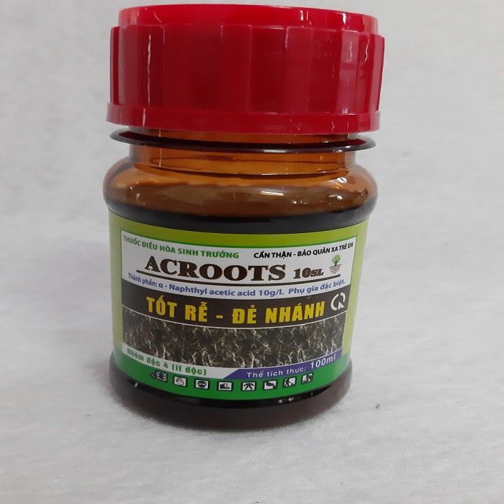 Chất điều hòa sinh trưởng ACROOTS - Giúp tốt rễ, đẻ nhánh Công dụng: ACROOTS 10 SL chứa Auxin α - NAA có công kích thích ra rễ cực mạnh, đẻ nhánh nhiều, mập mầm, xanh cây, xanh lá... Thích hợp cho mọi giai đoạn phát triển của cây trồng, đặc biệt là khi cây trải qua giai đoạn tổn thương của bộ rễ như cây non, cây mới trồng, giai đoạn điều kiện thời tiết bất lợi (hạn hán, ngập úng, ngộ độc hữu cơ...)Giá UFO