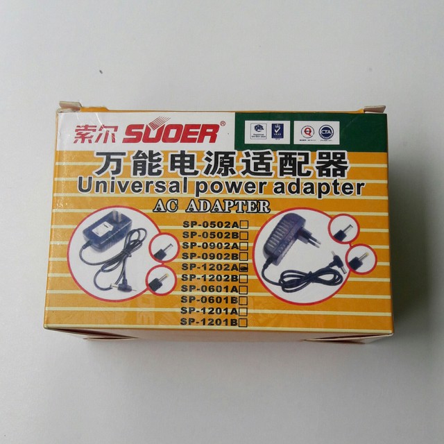 Adapter 12V - 2A . 2 Jack cắm Suoer SP - 1202Điện áp đầu vào: AC 100V-240V 50-60Hz