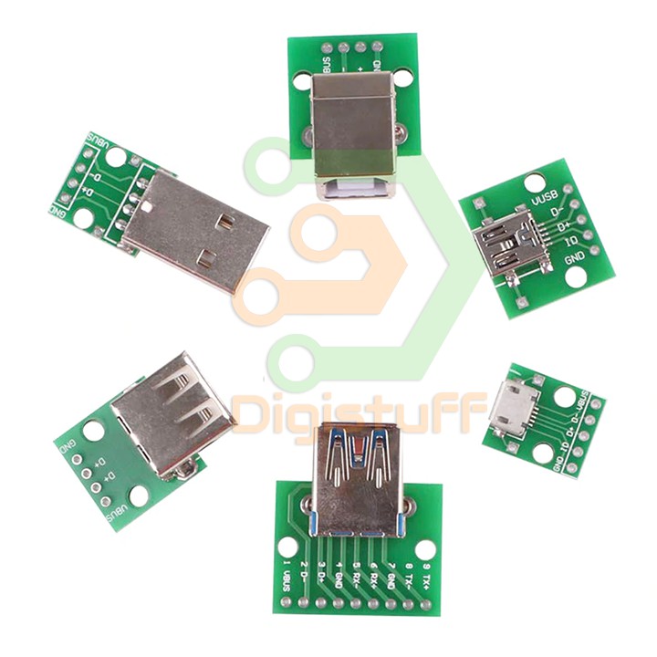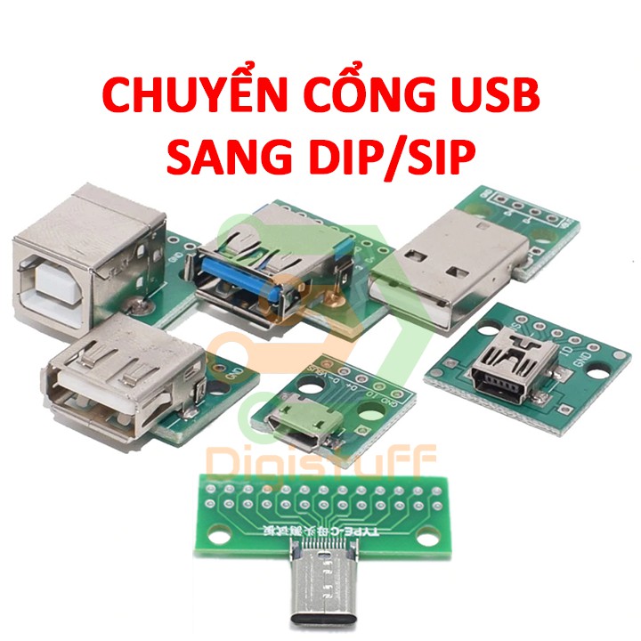 Adapter chuyển cổng USB sang DIP SIPAdapter chuyển cổng USB 2.0 / USB 3.0 / Micro USB / USB Type C sang DIP / SIP 2.54mm cho dân DIY. Các bạn có thể mua thêm chân cắm SIP/DIP 2.54mm để dùng chung với thiết bị này.