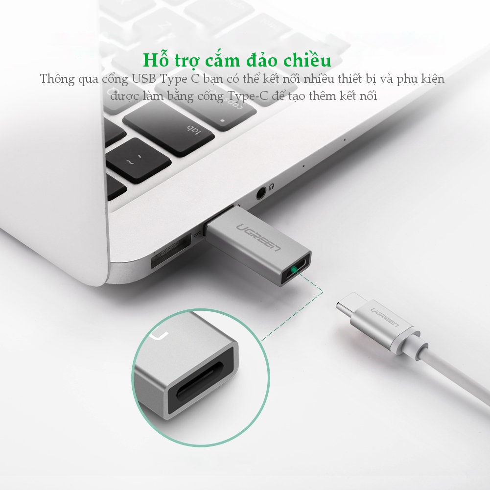 Adapter chuyển đổi USB 3.0 đực sang USB 3.1 Type C cái UGREEN US204 US276 dùng cho PC, laptop, macbook, điện thoại