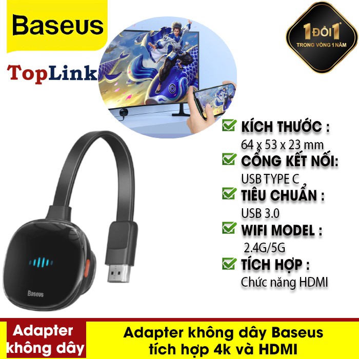 Adapter Không Dây Baseus Meteorite Shimmer Wireless Display Adapter Kết Nối 4K HDMI Cho TV, Máy Tính, Màn Hình Ô TôChào mừng bạn đến với TOPLINK - Thế Giới Phụ Kiện