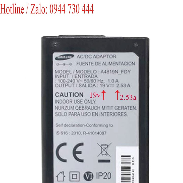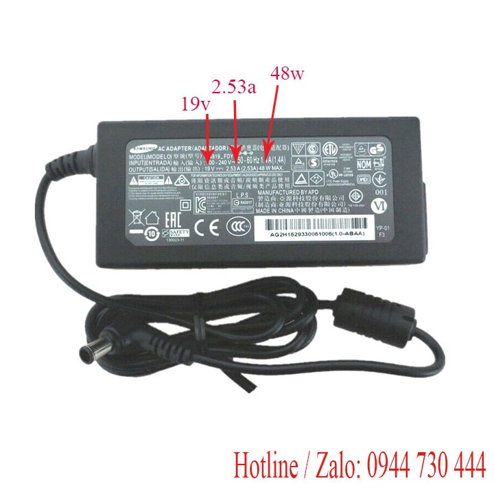 Thông tin kỹ thuật Adapter màn hình Samsung 19v 2.53aHãng sản xuất: Samsung