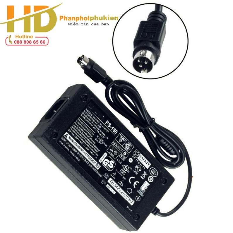 Adapter nguồn cho máy in nhiệt, máy in hóa đơn tính tiền, máy in POS các loại dạng chân cắm 3 pinThông số Adapter máy in 24V-2A