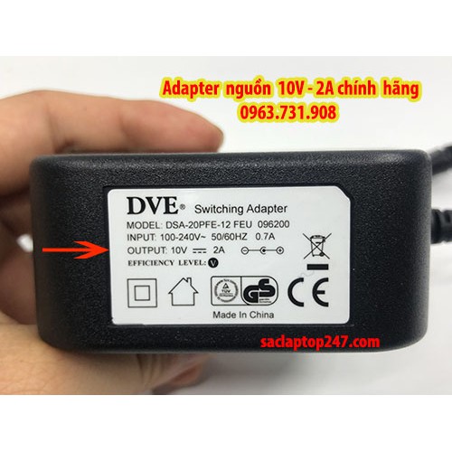 1 Thông số kỹ thuật trên sản phẩm adapter nguồn 10V 2A chính hãng– Màu: đen
