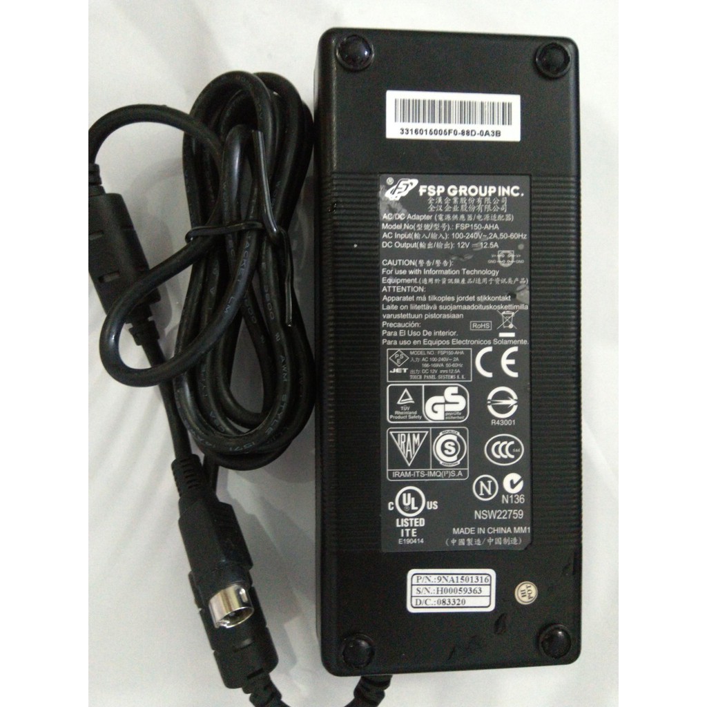 Thông số kỹ thuật Adapter nguồn FSP 12v 12.5A chân 4 pin