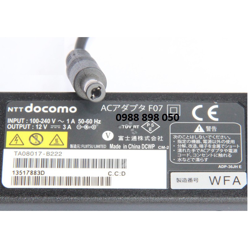 THÔNG SỐ KỸ THUẬT Adapter 12v 3a DOCOMO / Nhật Bản