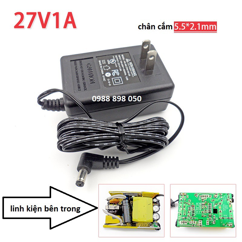 Công suất đầu ra: DC 27V 1A 19W dùng chung cho các thiết bị 1a trở xuống như 0.8a – 0.6a- 0.5a…