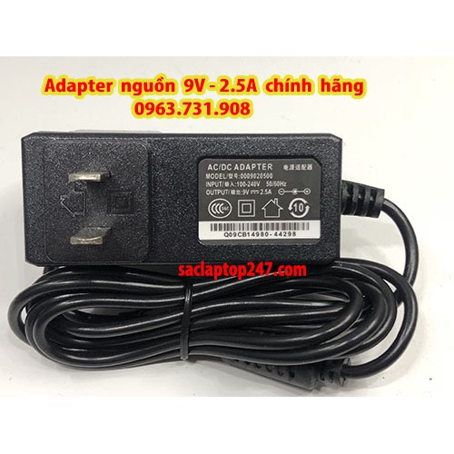 1 Thông số kỹ thuật trên cục sạc nguồn 9v 2.5a chính hãng– Màu: Đen