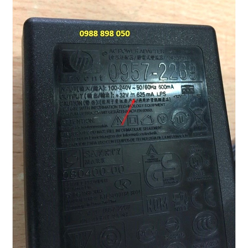 THÔNG SỐ KỸ THUẬT adapter nguồn hp 32V 625mA chính hãngmodel : 0957-2269 TƯƠNG THÍCH VỚI MODEL 0957-2242 & 0957-2289, 0957-2269