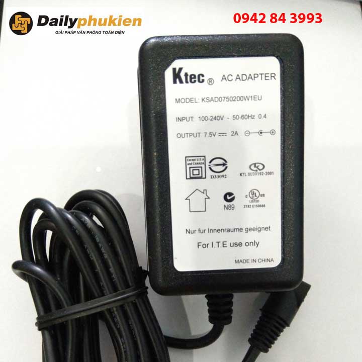 Adapter nguồn Ktec 7.5V 2A giá rẻ dailyphukien