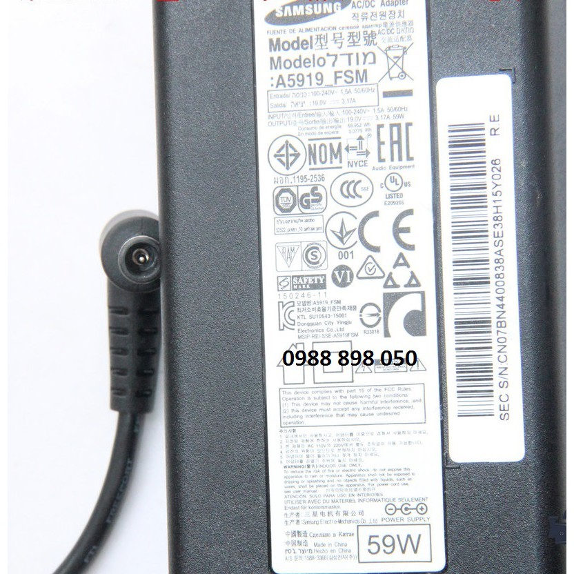 Thông số Adapter nguồn màn hình TV samsung 19V 3.17A