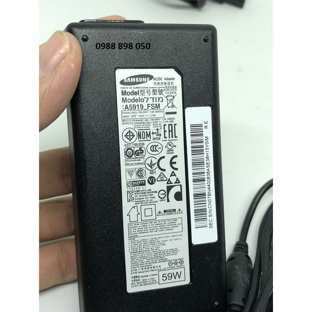 Cam kết: bán nguồn Adapter 19V 3.17A samsung