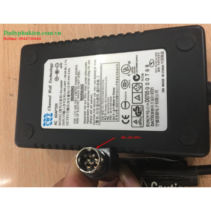 Adapter nguồn máy bán hàng POS OKPOS 12v 5a 4 pinĐiện áp đầu vào: 100-240V 50-60Hz