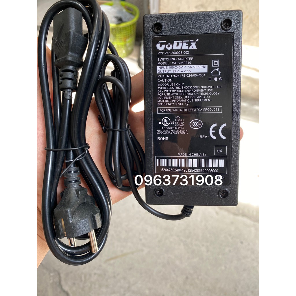 ADAPTER GODEX 24V 2,5A TƯƠNG THÍCH VỚI Máy in mã vạch GODEX G500. GODEX EZ1100 Plus, Godex G530, Godex EZ 120,Godex GE300, TSC