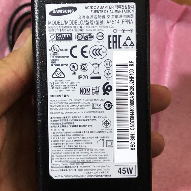 Adapter nguồn samsung 14v 3.22a chính hãngPhụ kiện đi kèm : dây nguồn