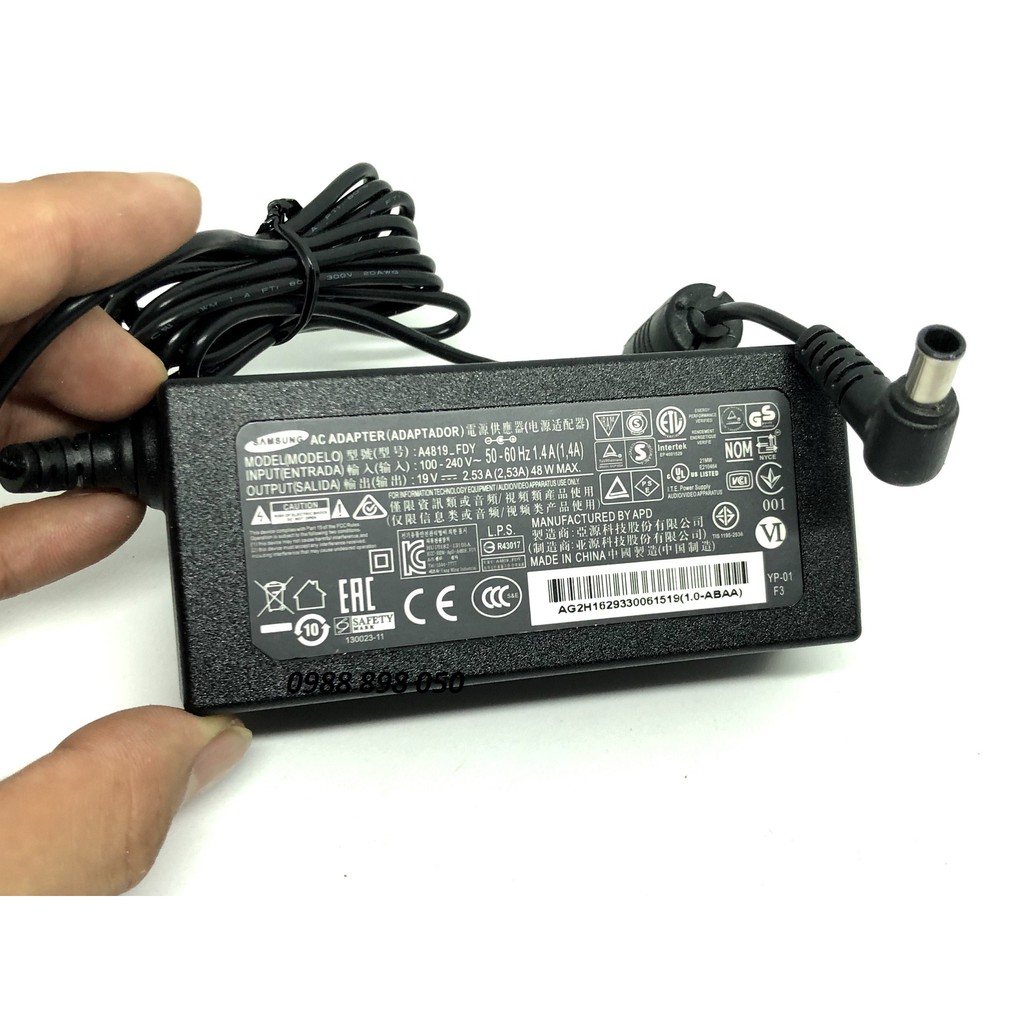 adapter SAMSUNG 19V 2.53A ac adapter có bảo vệ ngắn mạch.