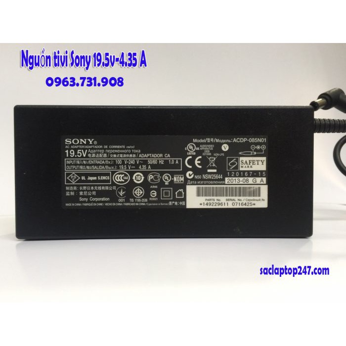 Thông số kỹ thuật trên Adapter- Nguồn tivi sony 19.5,4.35a