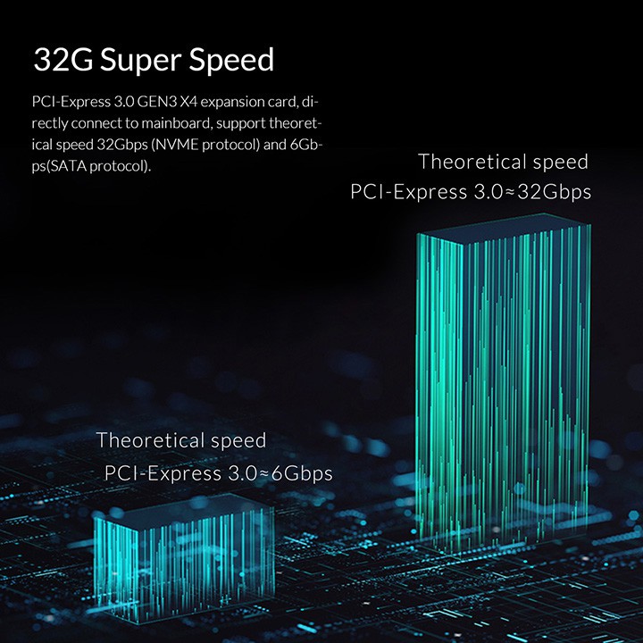 Tính năng: gắn SSD M.2 NVMe và M.2 SATA vào mainboard thông qua khe PCI-E X4, X8 hoặc X16 (khe VGA rời). Lưu ý: nếu gắn M.2 SATA cần thêm cáp dữ liệu SATA (không đi kèm). Lưu ý: không hỗ trợ M.2 AHCI