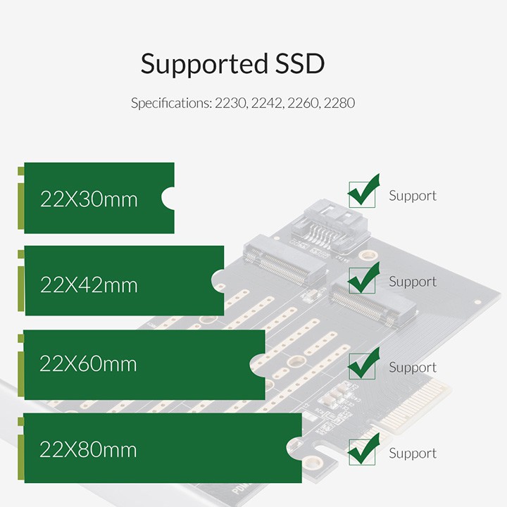 Hỗ trợ chân cắm B-key, B&M-key, M-key, kích thước 2230, 2242, 2260, 2280 (không hỗ trợ 22110, không hỗ trợ AHCI)