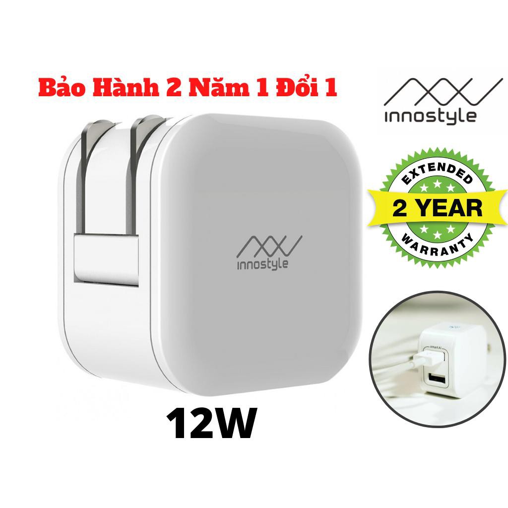 Adapter Sạc 2 Cổng USB 12W Innostyle Minigo 2 Smart AI Charging Chính Hãng