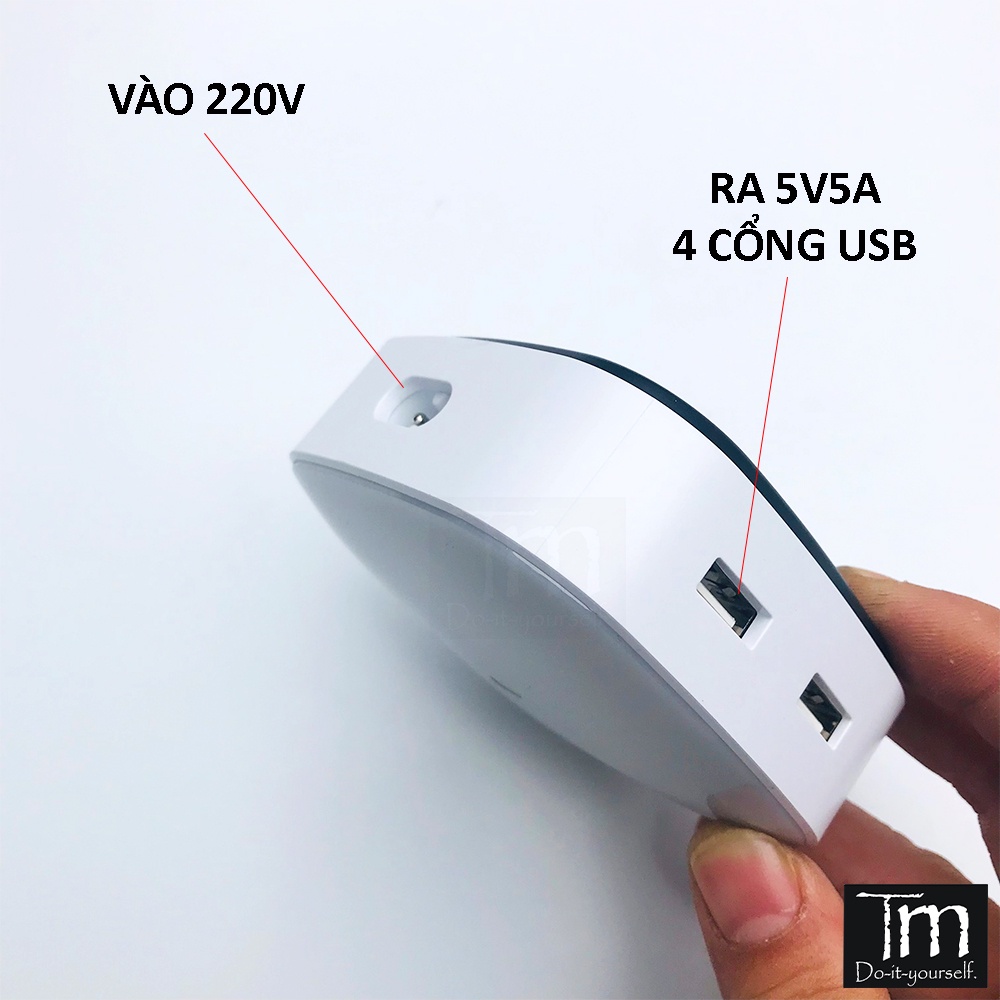 Giới thiệu Adapter Sạc 5V5A 4 Cổng USB - Kiêm Đèn ngủ Highlight