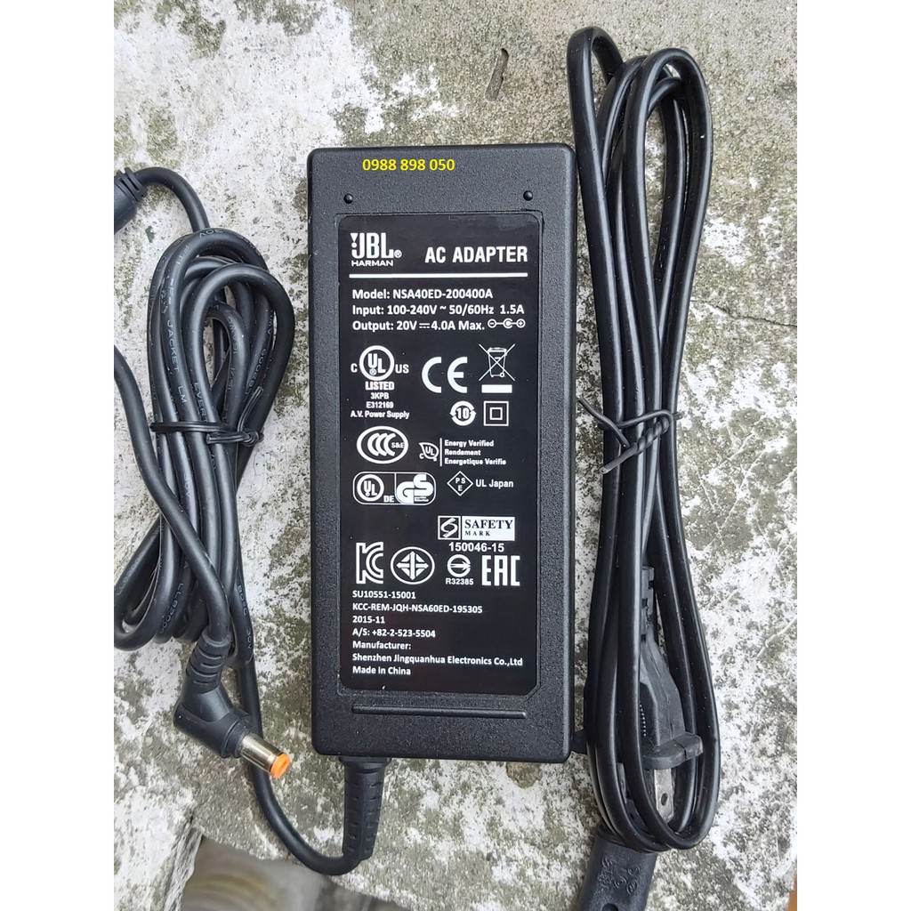 Thông số kỹ thuật Adapter- sạc loa JBL 20V 4.0A loại xịnHãng sản xuất: JBL
