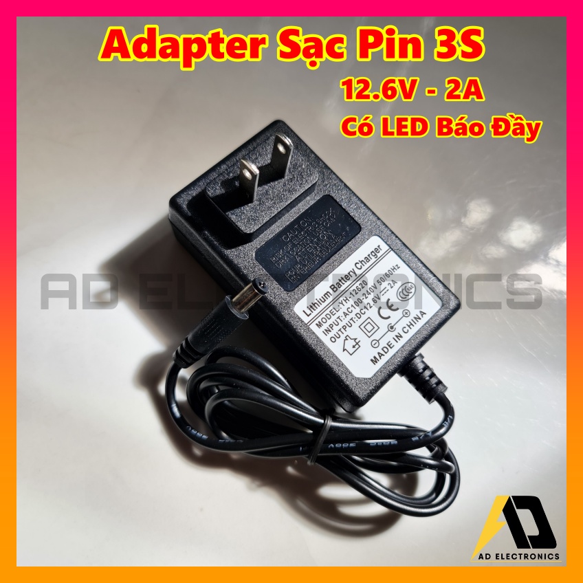 Thiết Bị Điện Gia Dụng > Pin || Adapter Sạc pin lion 3S 12.6V 2A Loại tốt, có Led báo đầy, tự ngắt sạc khi đầy pinCòn hàng